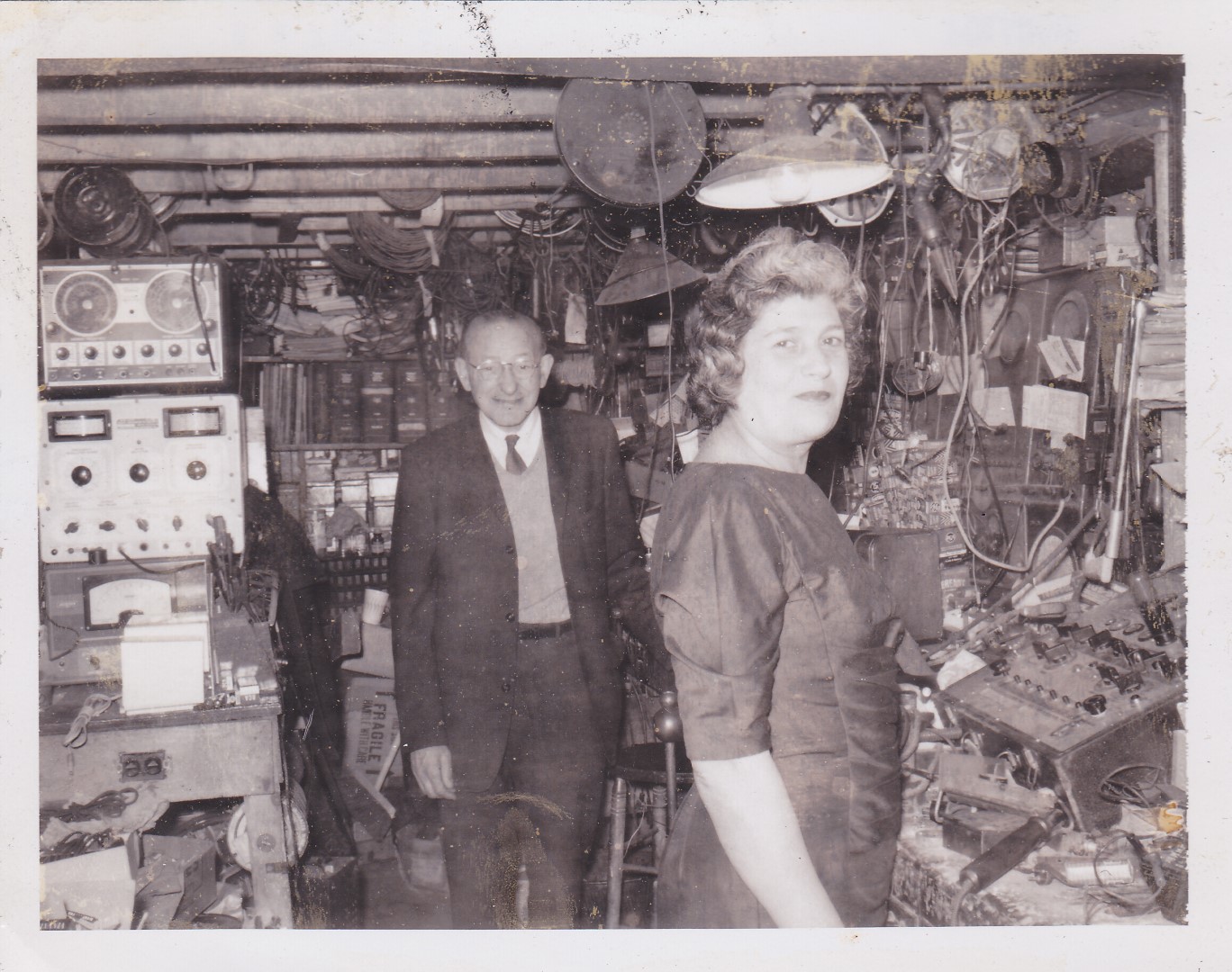 The candlestick phone is an original phone from the early 1900's. It's marked "Western Electric, Made in USA" and lists three patents dated Aug 16, 04, Sep 13, 04 and Jan 26, 15. It's relatively heavy just under 4 pounds (1.8 kilos). This particular phone has sentimental value because I found it in my grandfather's basement after he died. My grandfather ran a radio/TV repair shop in Boston from the 1920's to the early 1970's.Sam's Radio Stores Label.